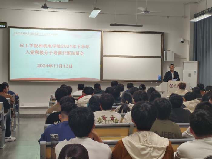 为深入学习贯彻党的二十届三中全会精神和习近平新时代中国特色社会主义思想,加强对入党积极分子的培养和教育,切实提高入党积极分子的政治素养和理论水平。2024年11月13日,机电学院联合应工学院举办2024年下半年入党积极分子培训开班动员会暨第一次授课。