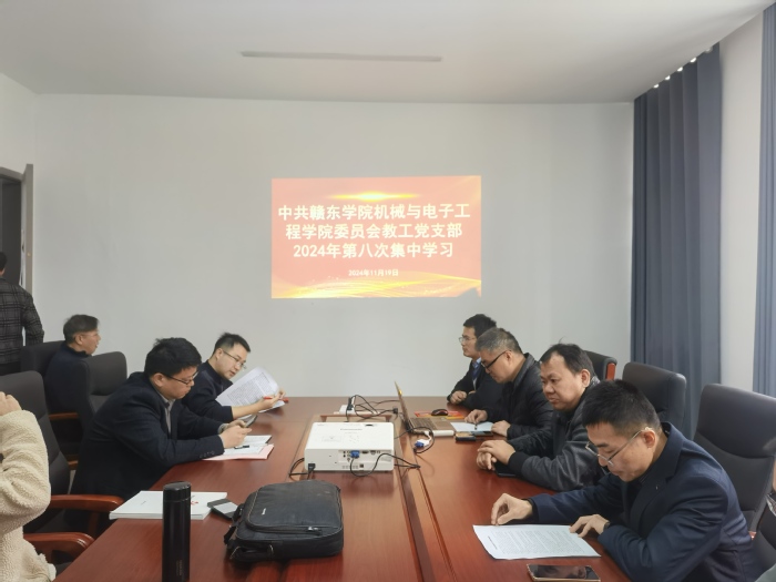 为深入学习贯彻党的二十届三中全会精神,强化党员党性观念和宗旨意识,提振党员干部干事创业精气神,11月19日,机电学院教工党支部组织全体党员在413会议室开展了第8次集中学习活动,会议由支部书记唐建林同志主持。