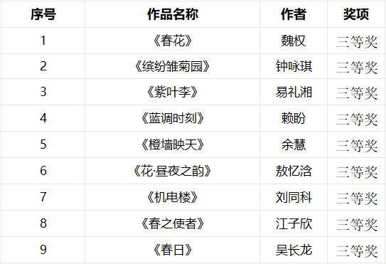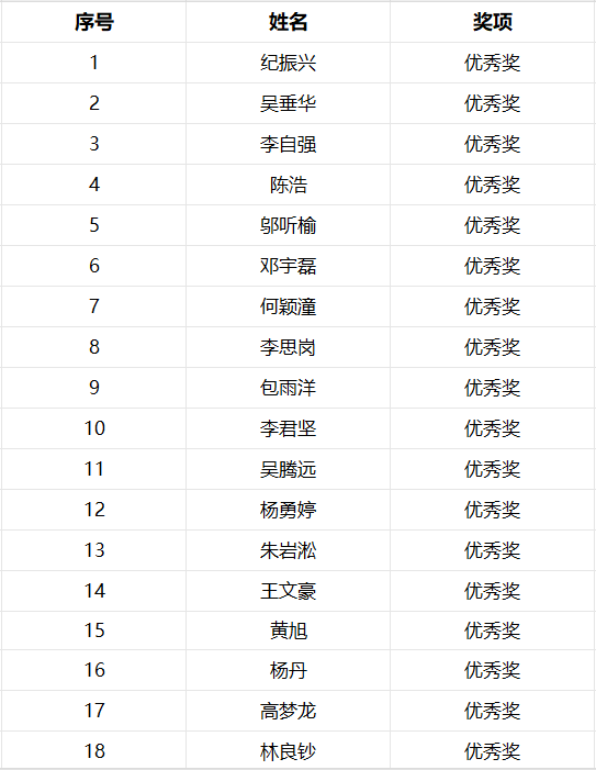 依照本次大赛评选规则,各位选手最终排名已经得出,现将获奖名单公布: