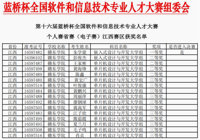 在近日落幕的“第十六届蓝桥杯全国软件和信息技术专业人才大赛”中,我院学子凭借扎实的专业功底和出色的创新能力,一举斩获省一等奖1项、省二等奖5项、省三等奖22项,共计28项荣誉。