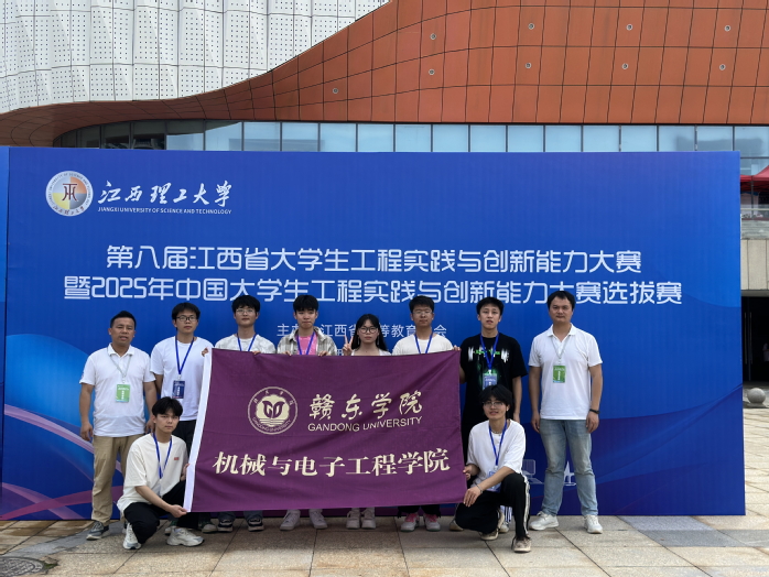 第八届江西省大学生工程实践与创新能力大赛暨2025年中国大学生工程实践与创新能力大赛选拨赛于5月9日-5月11日在江西理工大学三江校区隆重举行,来自全省29所高校的209支队伍角逐7个赛项。我院智能制造工程教研室唐建林、许仙明、陈俊玲老师组织指导8名学生首次参加该项赛事的物流搬运赛项,取得了好成绩,同时积累了宝贵的实战经验。