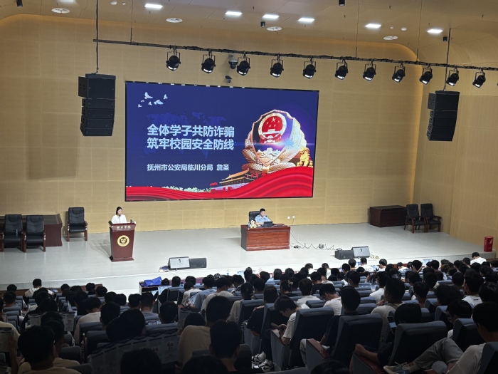 为进一步提高大学生的网络安全意识,筑牢校园反诈防线,9月12日下午,机电学院在大学生活动中心举办“全体学子共防诈骗,筑牢校园安全防线”反诈宣传主题讲座。讲座邀请抚州市公安局临川分局刑事侦查大队反诈中队三级警长詹圣警官作专题报告,机电学院新生辅导员和2025级新生积极参与。