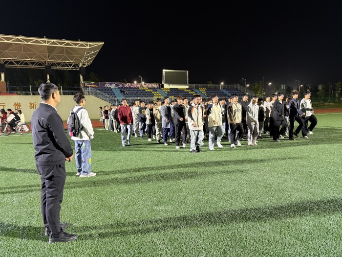 10月23日晚,训练场上灯光璀璨,学院开幕式方阵队员正专注进行队形与动作训练。学院党总支负责人管小明来到现场,对方阵队列、齐步和正步进行指导。在他的指导下,队员们认真练习各项动作,原本略显生疏的步伐逐渐变得整齐有力,响亮的口号声在操场里回荡,尽显团队的凝聚力与昂扬斗志。